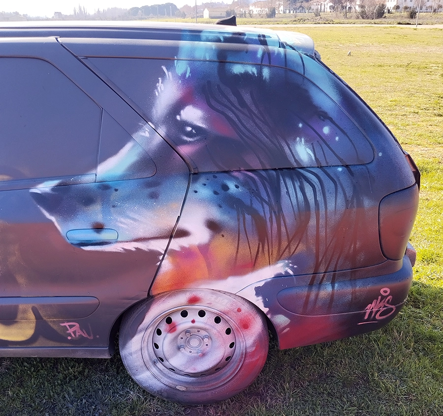 Comencé en el graffiti y el street art en el año 2000, de forma autodidacta, y encontré en los muros una forma de expresión libre y visceral.